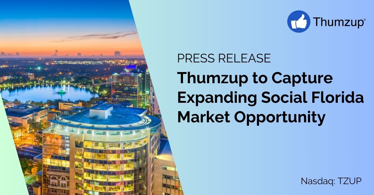 ("Thumzup" or the "Company") (Nasdaq: TZUP), an emerging leader in social media branding and programmatic marketing solutions, is excited to announce its strategic expansion into South Florida, building upon its already robust base in West Los Angeles. This move is expected to expand the Company’s footprint in the dynamic advertising and gig economy sectors.
